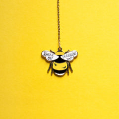 Save your place in style. This fun spring themed enamel chained bookmark features an illustrated bumble bee with the saying, 'Buzz Off I'm Reading.'