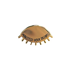 Manifest Your Dreams, the perfect enamel pin as an everyday reminder. Includes a rubber clutch backing to keep it safely attached to your favorite jacket, bag, or shirt.